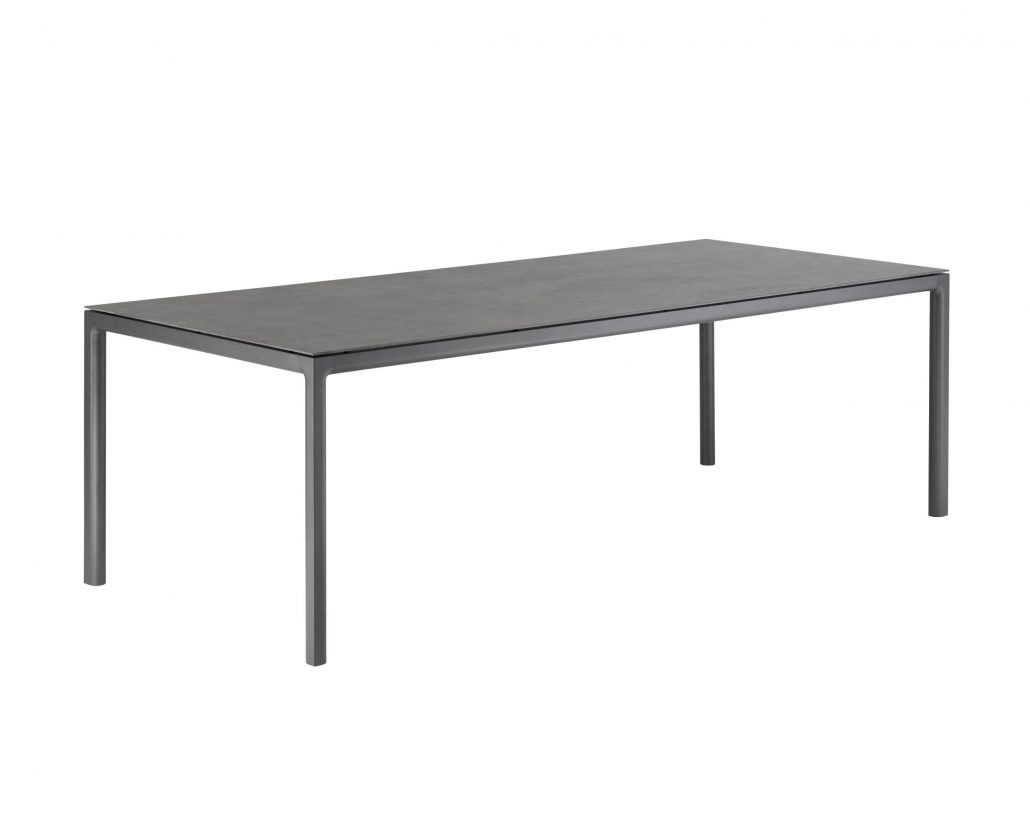 Wie aus einem Stück gegossen präsentiert sich der SOFT Tisch in schmalem, raffinertem Rahmenprofil mit kantigen Außenseiten, die nahtlos in weich gerundete Innenseiten und Tischbeinverbindungen übergehen. Die Tischgestelle aus Aluminium tragen wahlweise Keramik- oder HPL-Tischplatten und sind in unterschiedlichen Größen erhältlich.
