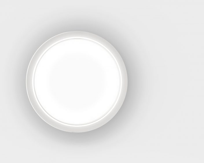 The round wall or ceiling lamp consists of an aluminium pressure cast case and a clear glass coated white from the inside. The clear reduced design and thick-walled safety glass emphasize the value of the lamp. The case is either white or anthracite powder-coated.