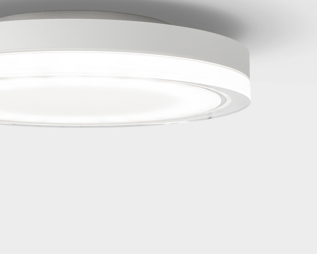 Die runde Wand- bzw. Deckenleuchte besteht aus einem Aluminiumdruckgussgehäuse und einem von innen weiß beschichtetem Klarglas. Der klare reduzierte Entwurf und das dickwandige Sicherheitsglas betonen die Wertigkeit der Leuchte. Das Gehäuse ist wahlweise weiß oder anthrazitfarben pulverbeschichtet.